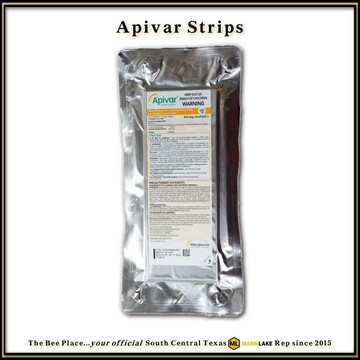 Apivar® is an extended-release Amitraz strip used for the control of Varroa mites in honey bee colonies. Strips are packaged in vacuum-sealed foil pouches for freshness.